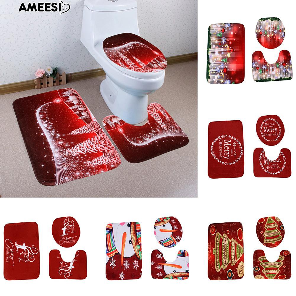 Christmas Home Decor Bath Rug Set Non Slip Lid Mat Toilet Cover
